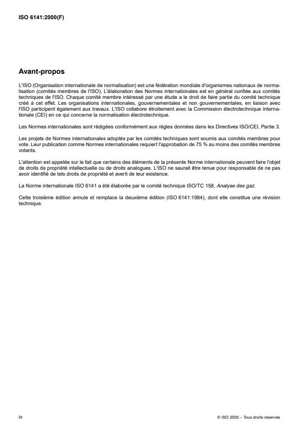 Cette troisième édition annule et remplace la deuxième édition (ISO 6141:1984), dont elle constitue une révision