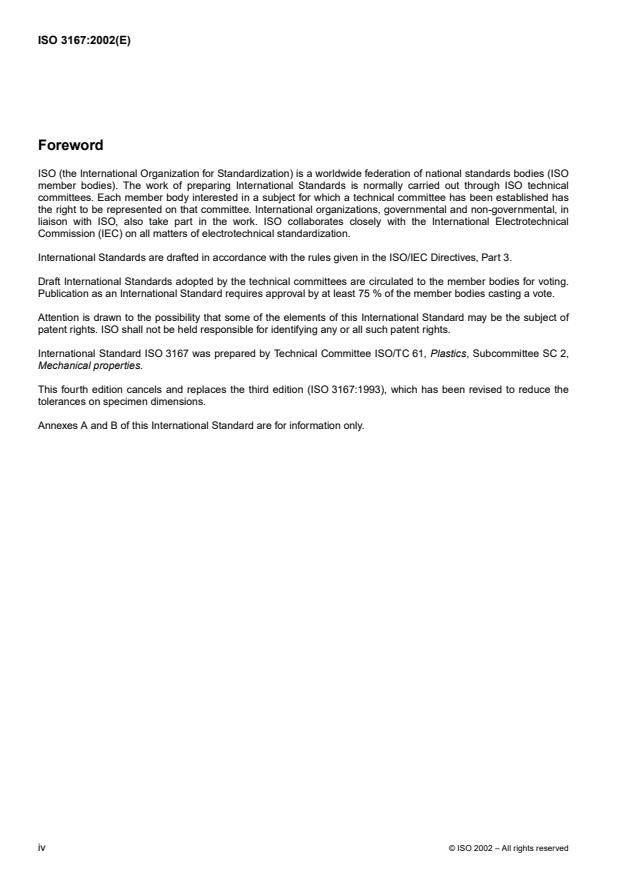 International Standard ISO 3167 was prepared by Technical Committee ISO/TC 61, Plastics, Subcommittee SC 2,