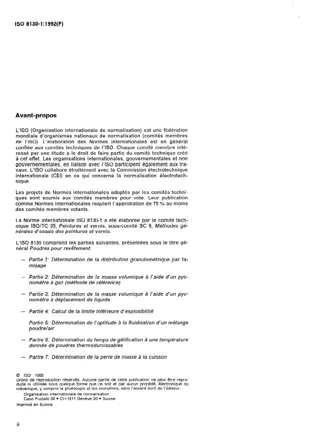 La Norme internationale ISO 8130-I a été élaborée par le comité tech-