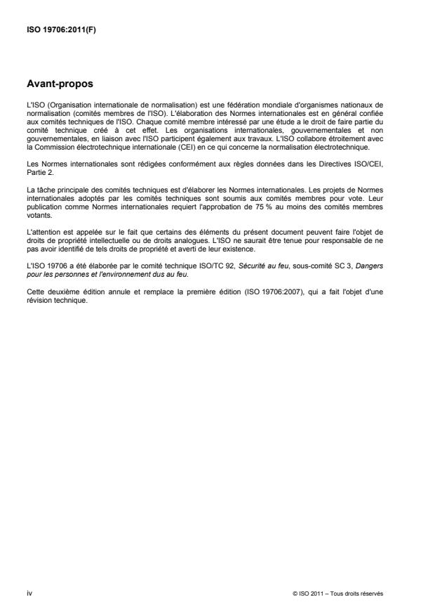 Ta mednarodni standard je namenjen lažji obravnavi posledic enkratne akutne izpostavljenosti človeka požarnemu dimu. Ta mednarodni standard ne obravnava drugih učinkov vročine, plinov in aerosolov, kot so učinki na elektronsko opremo in učinki pogoste, večkratne okoljske izpostavljenosti oseb, ki so pomembni pri načrtovanju požarne varnosti.