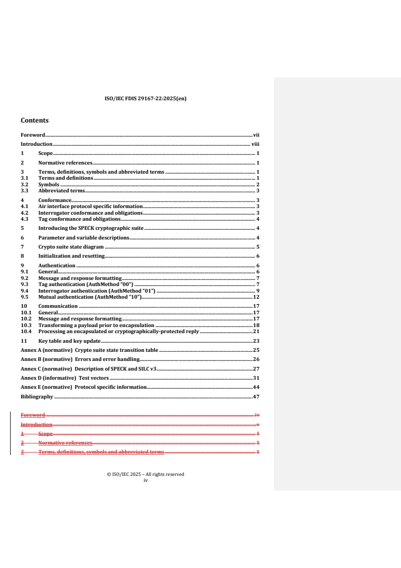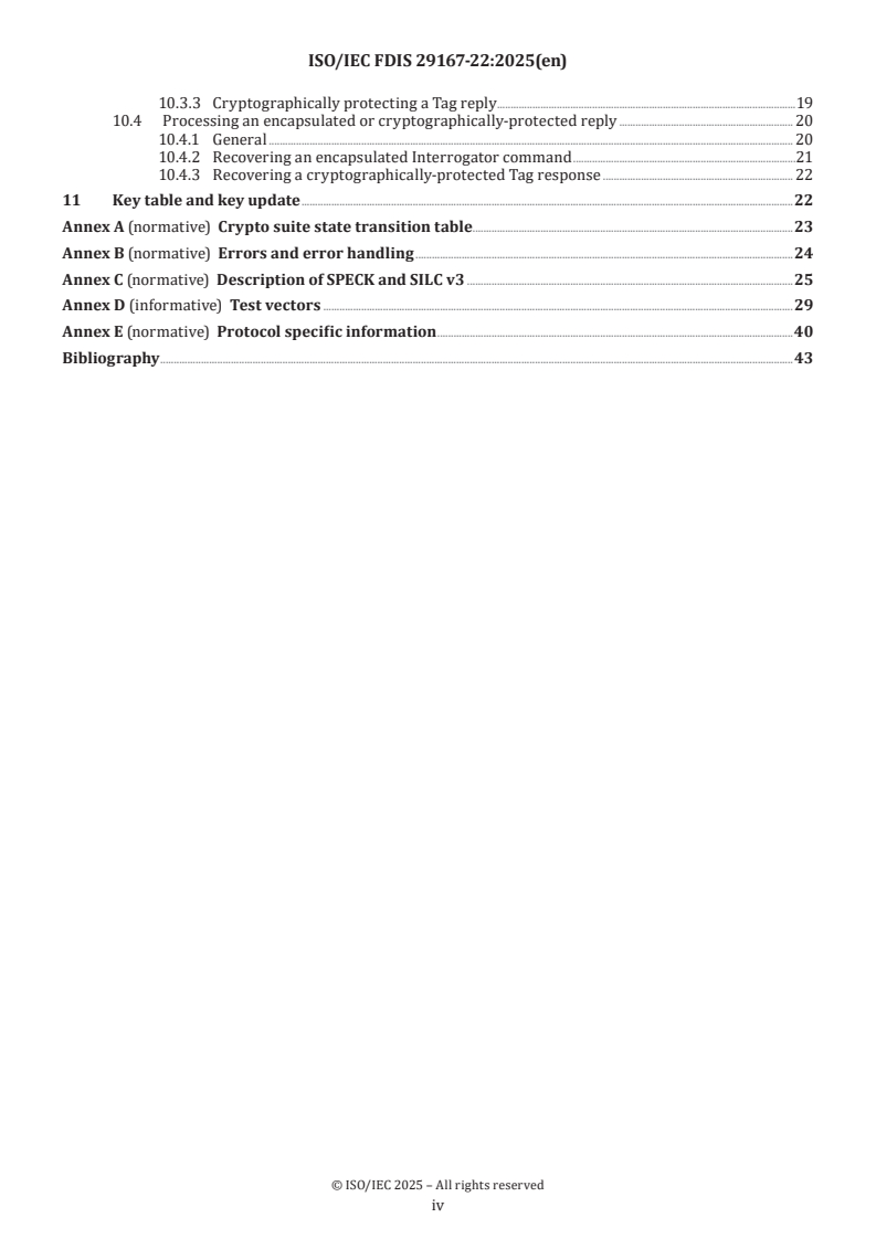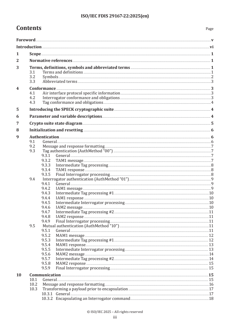 REDLINE ISO/IEC FDIS 29167-22 - Information technology — Automatic identification and data capture techniques — Part 22: Crypto suite SPECK security services for air interface communications Released:10/3/2025