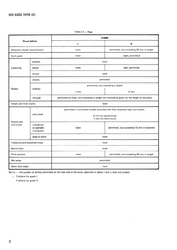 ISO 5321, Frises brutes en bois résineux pour parquets - n’en est admis dans la dernière classe (II) ne doivent