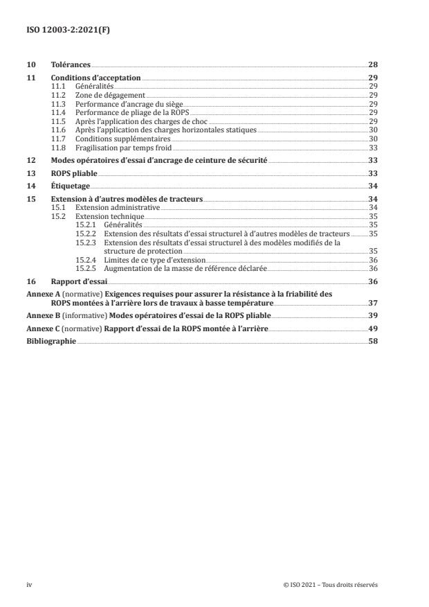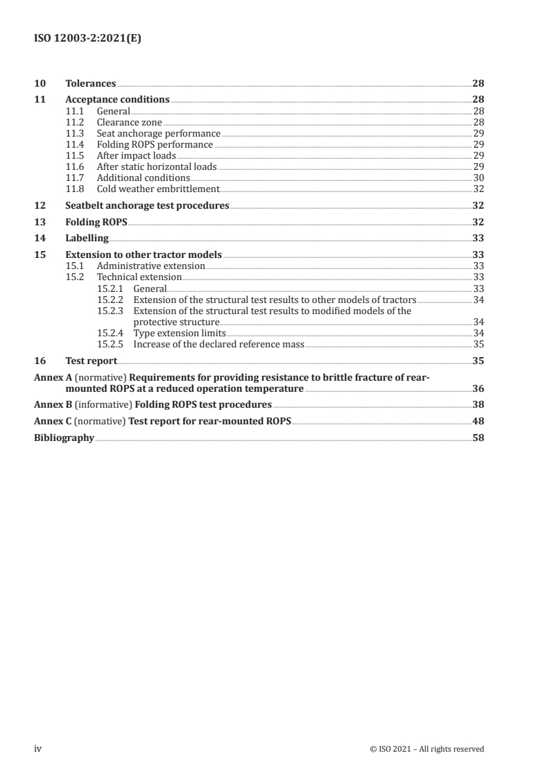 - Documentation: mandatory test report format and annexes covering cold‑temperature resistance, folding‑ROPS procedures and a normative test report template.