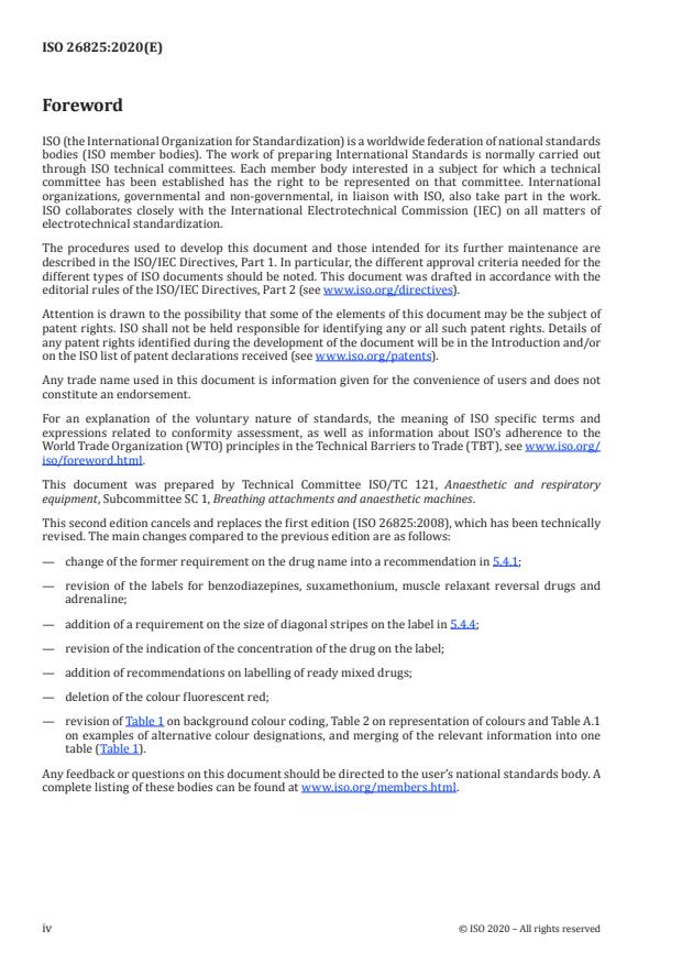 ISO 26825:2020 specifies requirements for user-applied labels for syringes containing drugs used during anaesthesia. The standard defines the colour coding, size, typographic layout and general performance of syringe labels so that the contents can be reliably identified immediately before use. It is intended to reduce medication errors during anaesthesia and to standardize label design across manufacturers and clinical settings.