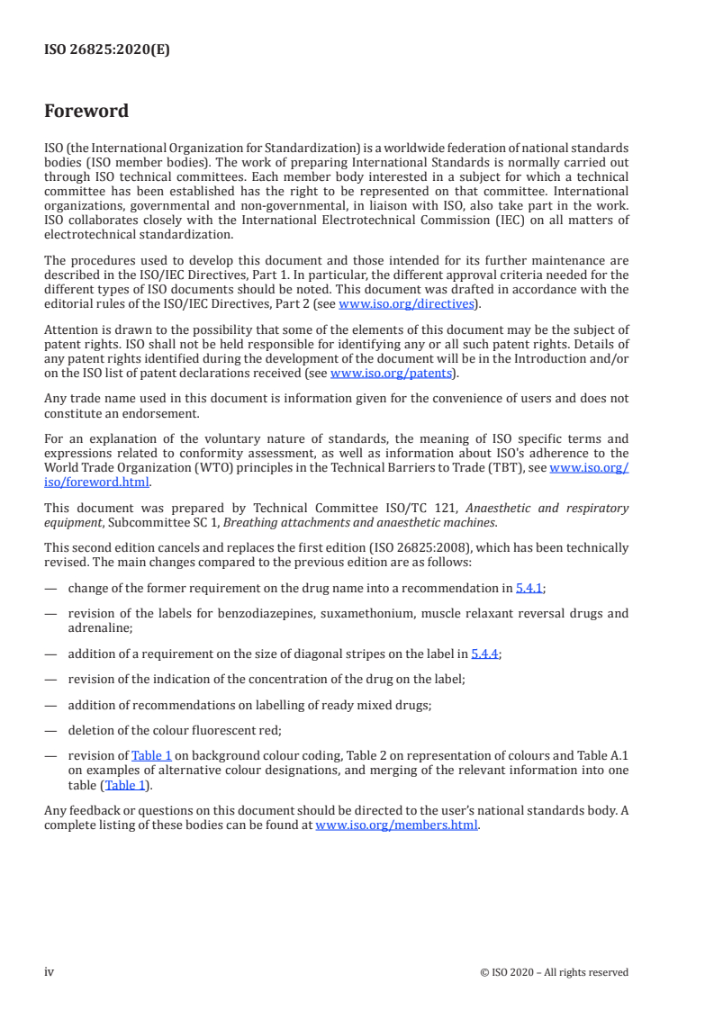 ISO 26825:2020 - Anaesthetic and respiratory equipment — User-applied labels for syringes containing drugs used during anaesthesia — Colours, design and performance/2/2020