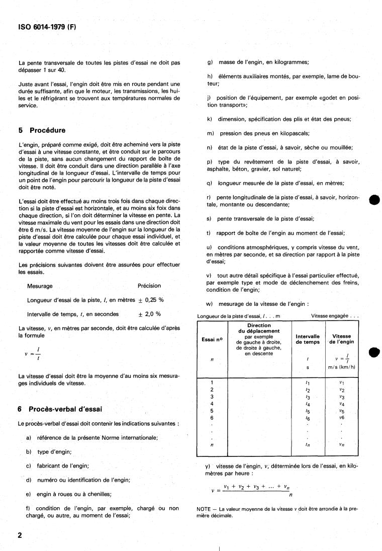 2.5 vitesse de l‘engin : Vitesse moyenne de l’engin, tel qu‘il 4 Conditions de l’essai