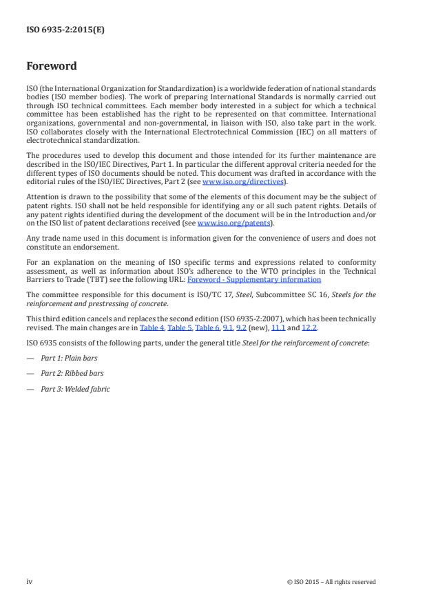 ISO 6935-2:2015 specifies technical requirements for ribbed bars to be used as reinforcement in concrete. ISO 6935-2:2015 is applicable to steel delivered in the form of bars, coils and de-coiled products. It includes both weldable and non-weldable steels. The production process is at the discretion of the manufacturer. It is not applicable to ribbed bars produced from finished products, such as plates and railway rails.