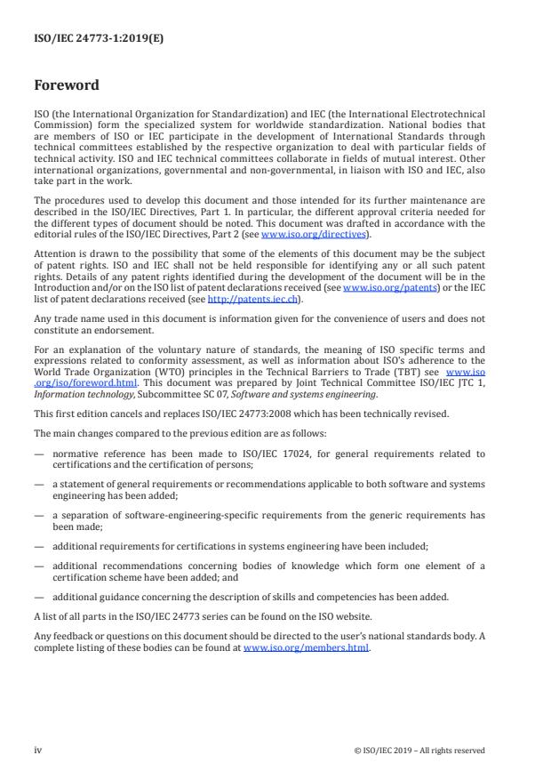 ISO/IEC 24773-1:2019 addresses core elements of professional certification for software and systems engineering, including: