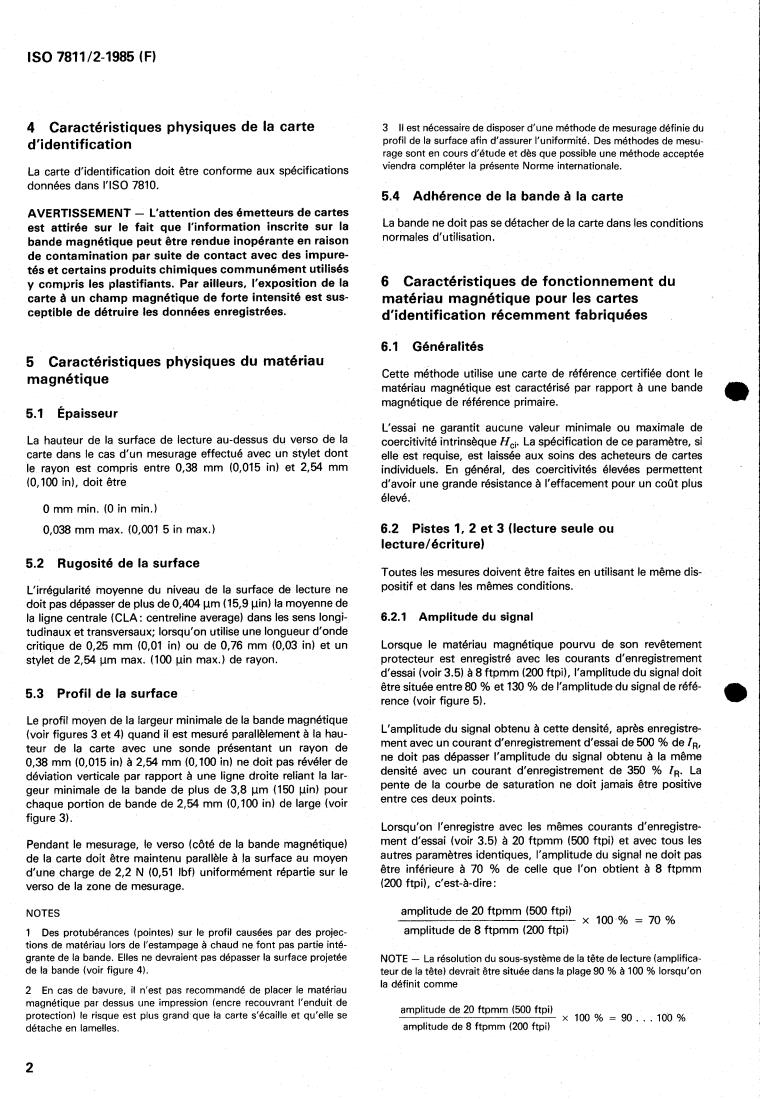 Cartes d'identification - Technique d'enregistrement - Partie 2: Magnétique