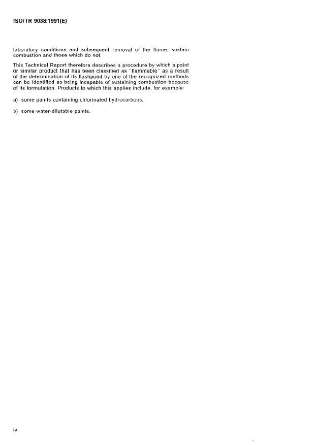 ISO/TR 9038:1991 - Paints and varnishes -- Determination of the ability of liquid paints to sustain combustion