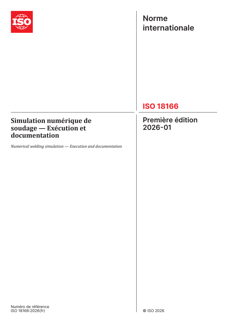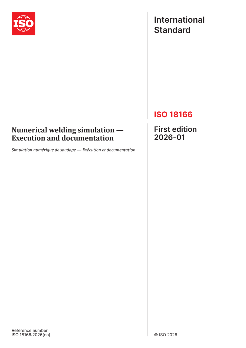 ISO 18166:2026 - Numerical welding simulation — Execution and documentation Released:28. 01. 2026