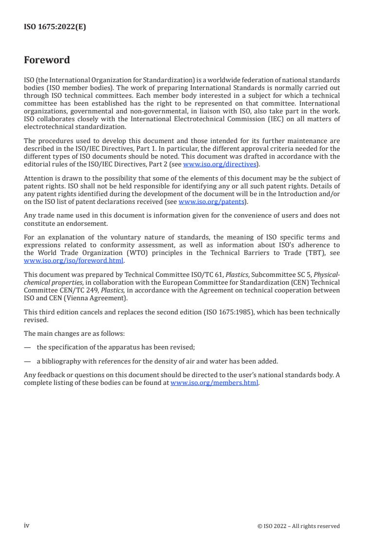 Cette troisième édition annule et remplace la deuxième édition (ISO 1675:1985), qui a fait l’objet d’une