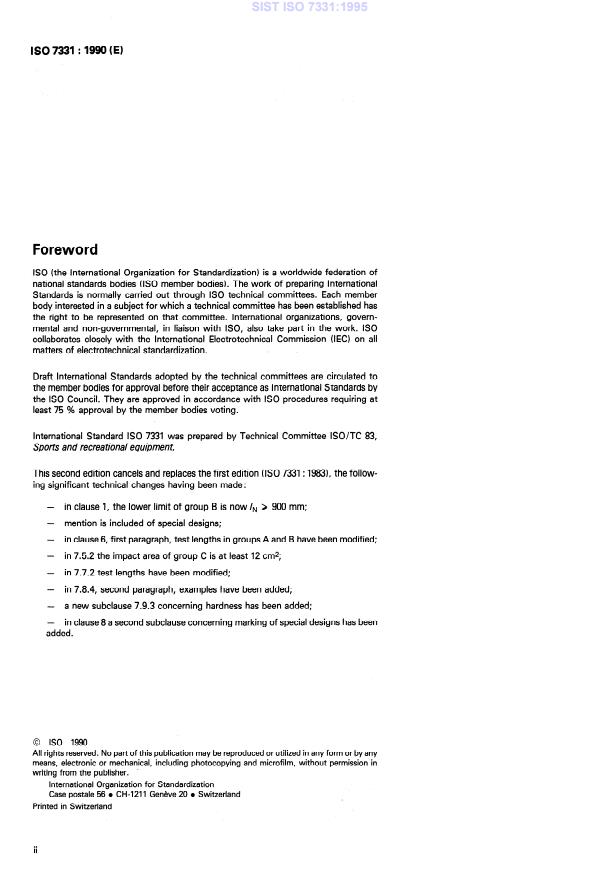 ISO 7331:1990 - Ski-poles for alpine skiing -- Safety requirements and test methods