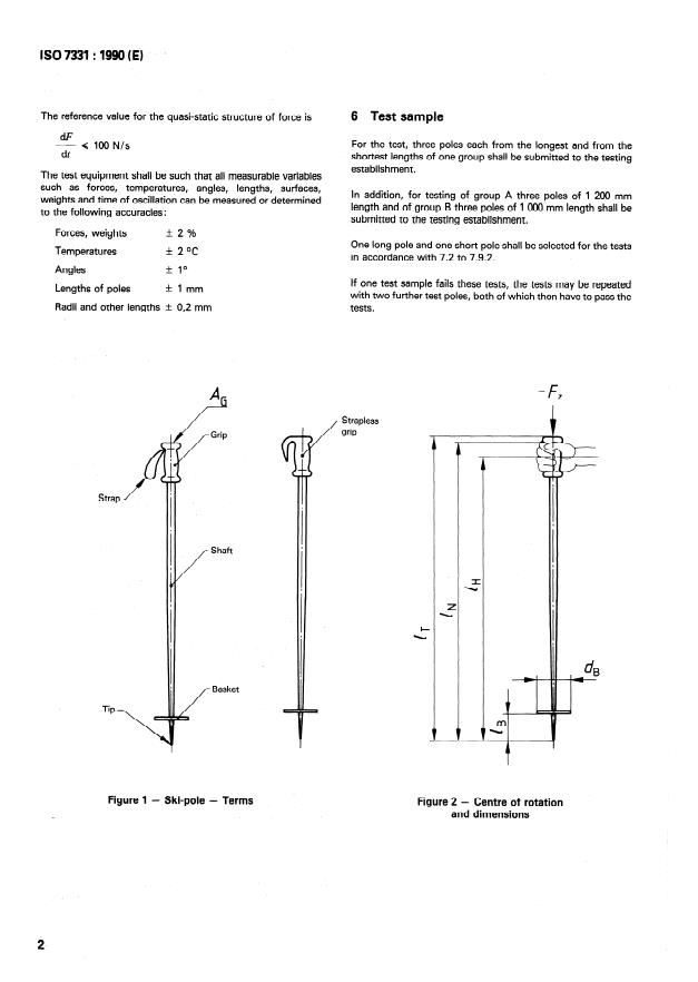 quirements for safety in ski-poles for alpine skiing and gives test which shall be expressed in the units given: