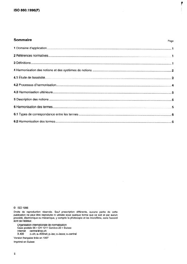 ISO 860:1996 - Travaux terminologiques -- Harmonisation des notions et des termes