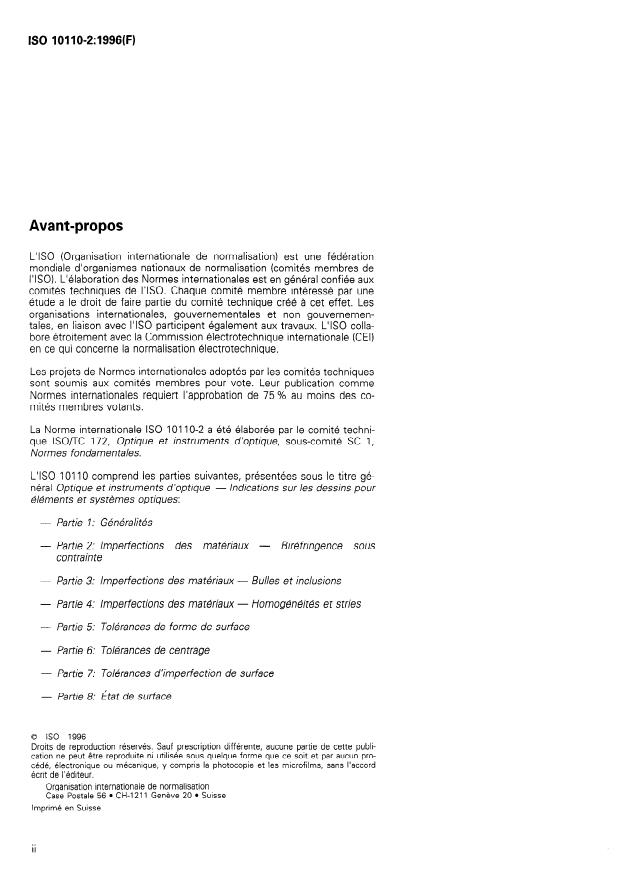 La Norme internationale ISO 10110-2 a été élaborée par le comité techni-