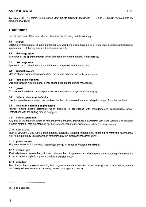 ISO 11448:1997 - Powered shredders and chippers — Definitions, safety requirements and test procedures Released:8/21/1997