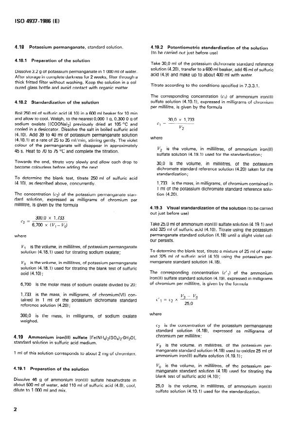 Keywords: ISO 4937:1986, chromium determination, potentiometric titration, visual titration, steel analysis, ammonium iron(II) sulfate, potassium permanganate, acid digestion, chemical analysis of chromium.