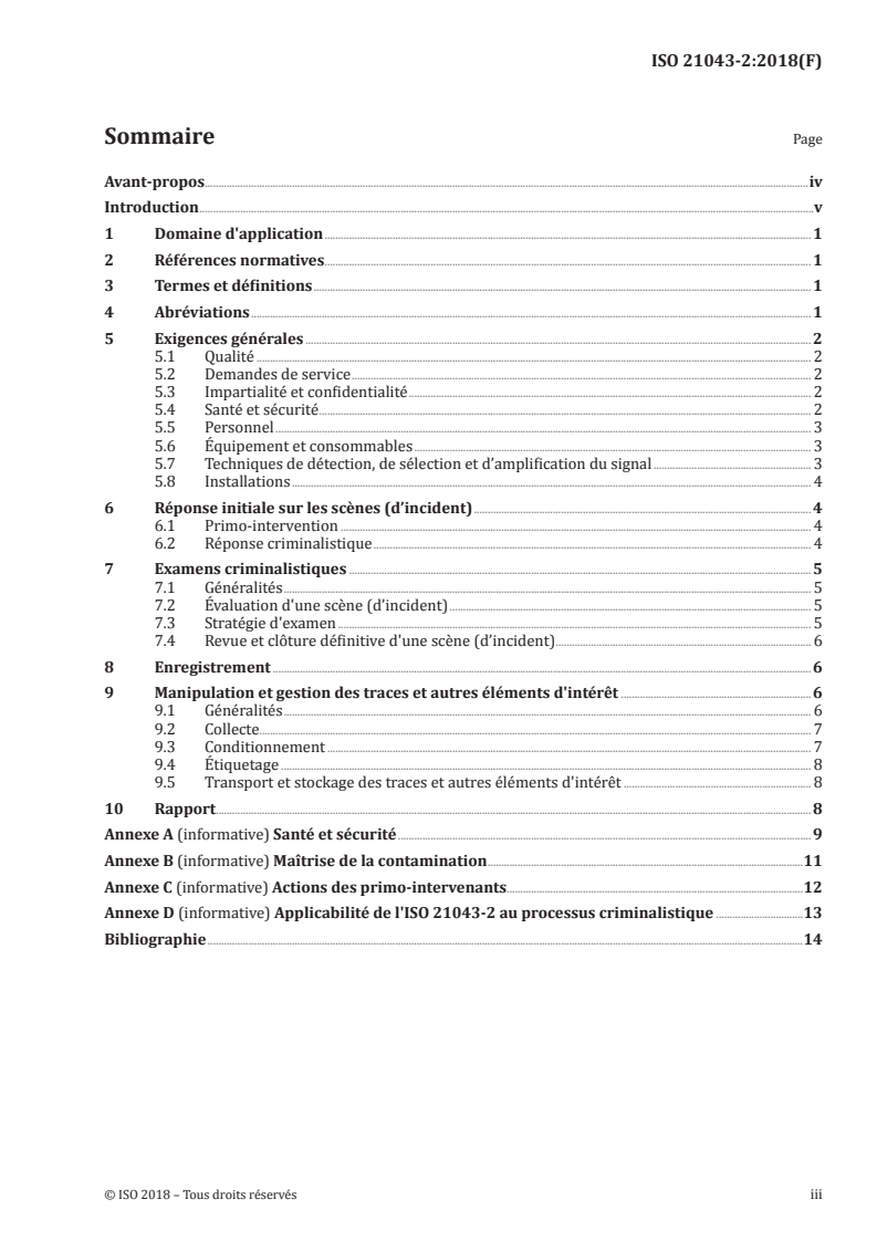 Keywords: ISO 21043-2, forensic sciences, evidence handling, crime scene, chain of custody, evidence collection, contamination prevention, forensic quality requirements.