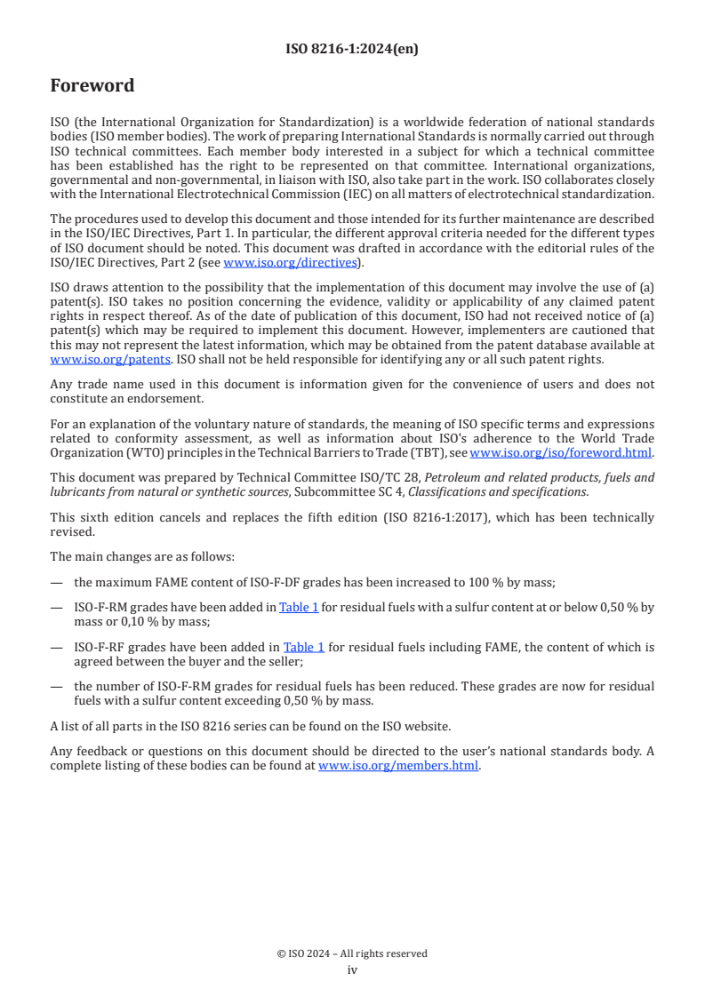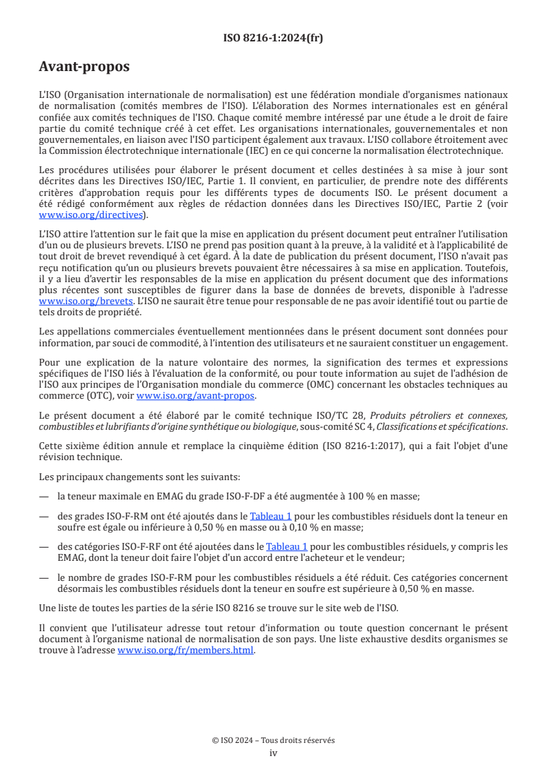 Cette sixième édition annule et remplace la cinquième édition (ISO 8216-1:2017), qui a fait l'objet d'une