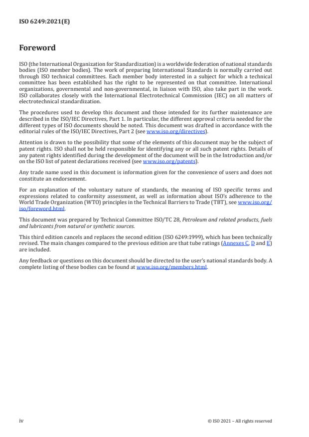 ISO 6249:2021 is a standard published by the International Organization for Standardization (ISO). Its full title is "Petroleum products — Determination of thermal oxidation stability of gas turbine fuels". This standard covers: This document specifies a procedure for rating the tendencies of gas turbine fuels to deposit decomposition products within the fuel system. It is applicable to middle distillate and wide-cut fuels and is particularly specified for the performance of aviation gas turbine fuels. The test results are indicative of fuel thermal oxidation stability during gas turbine operation and can be used to assess the level of deposits that form when liquid fuel contacts a heated surface at a specified temperature. This method is also applicable to aviation turbine fuel that consists of conventional and synthetic blending components as defined in the scope of for instance ASTM D7566[1] and Def Stan 91-091[2]. NOTE For the benefit of those using older instruments, non-SI-units and recalculated numbers are given in between brackets where they are more suitable.