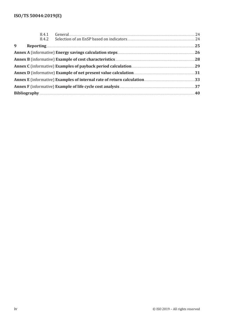 Keywords: ISO/TS 50044, energy saving projects, EnSPs, economic evaluation, financial evaluation, NPV, IRR, payback, LCCA, energy performance.