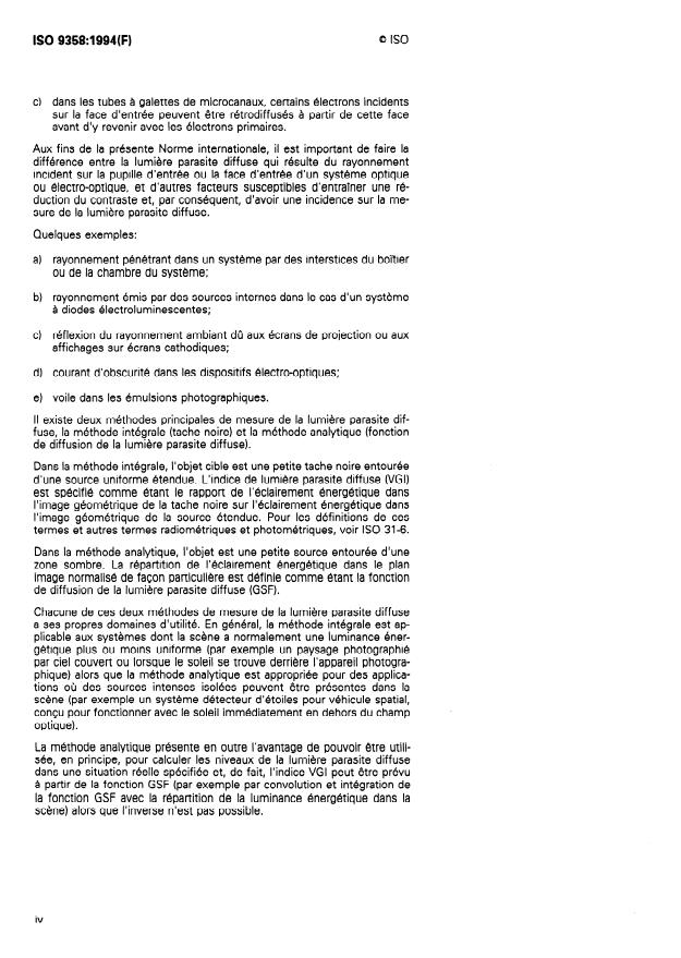 ISO 9358:1994 - Optique et instruments d'optique -- Lumiere parasite diffuse des systemes d'imagerie -- Définitions et méthodes de mesure