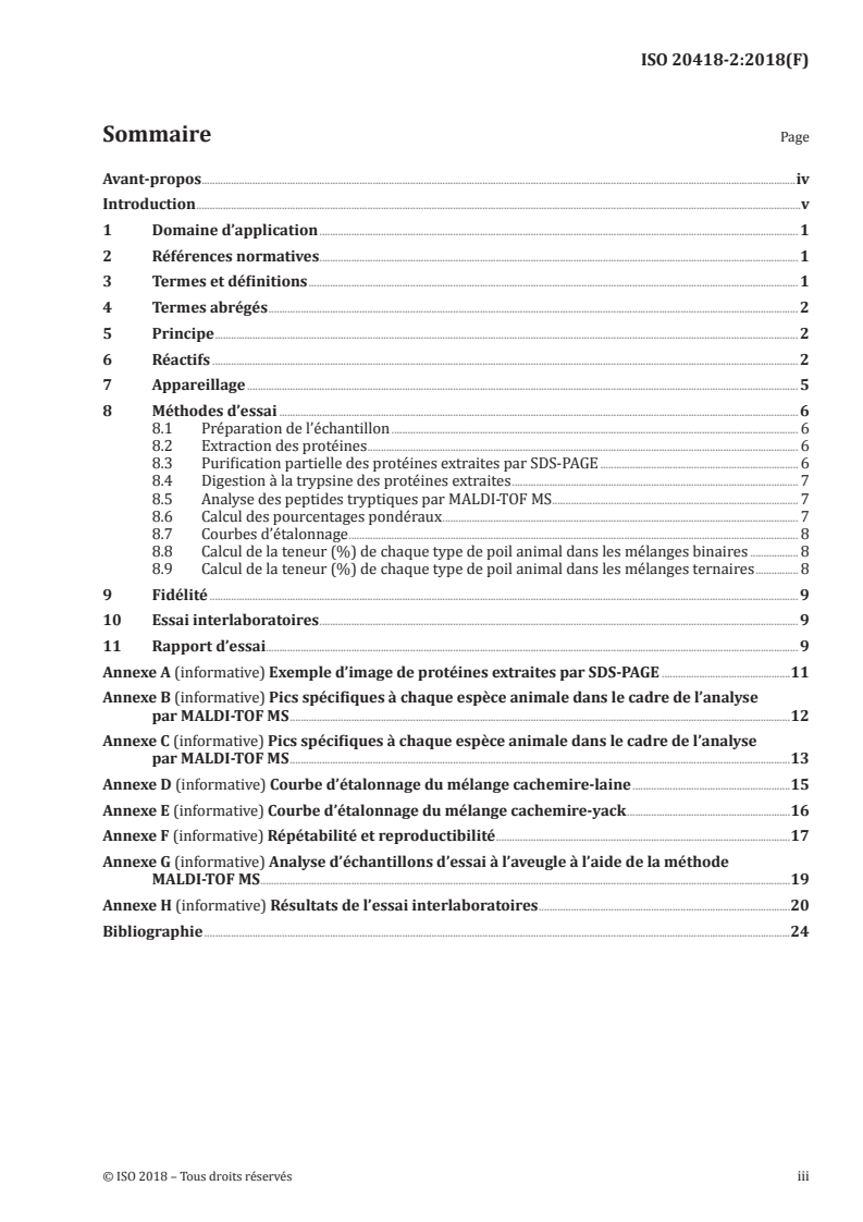 Keywords: ISO 20418-2:2018, MALDI‑TOF MS, proteomic analysis, animal hair fibres, peptide detection, textiles, SDS‑PAGE, trypsin digestion, calibration curve, fibre composition.