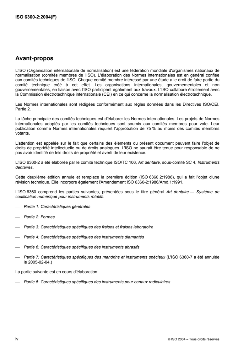 ISO 6360-2:2004 - Art dentaire — Système de codification numérique pour instruments rotatifs — Partie 2: Formes Released:20. 10. 2005