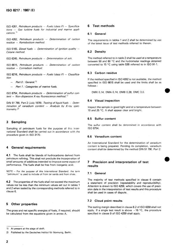 ISO 8217:1987 - Petroleum products — Fuels (class F) — Specifications of marine fuels Released:4/9/1987