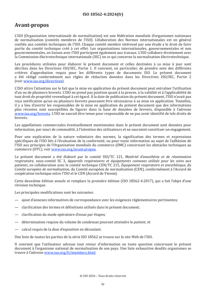 ISO 18562-4:2024 - Évaluation de la biocompatibilité des chemins de gaz respiratoire utilisés dans le domaine de la santé — Partie 4: Essais concernant les relargables dans le condensat Released:8. 03. 2024