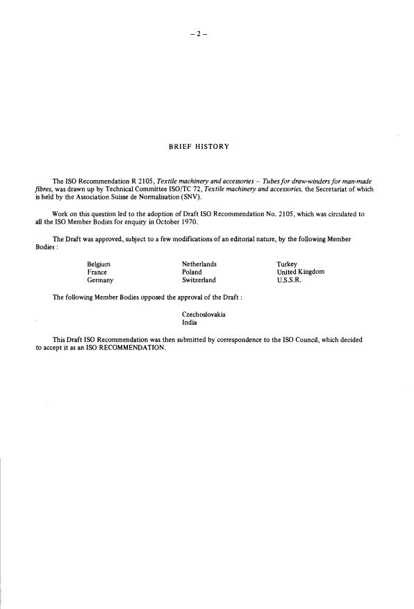 The IS0 Recommendation R 2 1 05, Textile machinery and accessories - Tubes for draw-winders for man-made