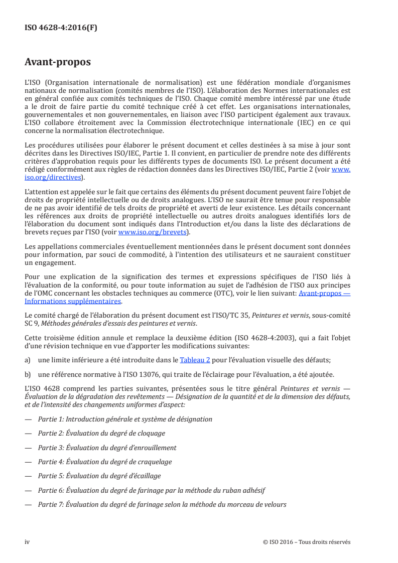 Cette troisième édition annule et remplace la deuxième édition (ISO 4628-4:2003), qui a fait l’objet