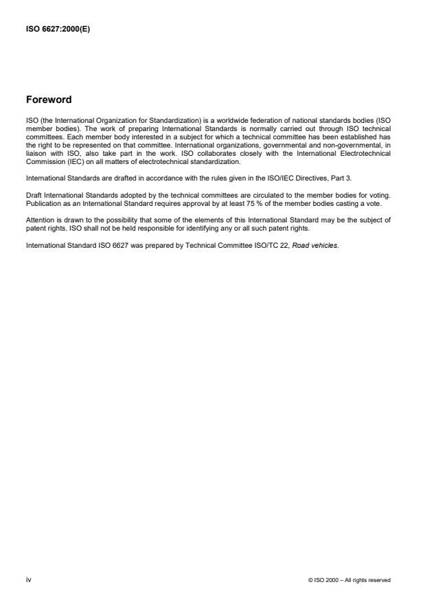 International Standard ISO 6627 was prepared by Technical Committee ISO/TC 22, Road vehicles.