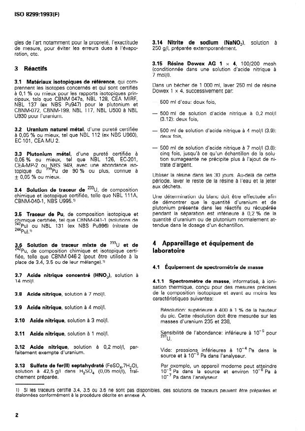 ISO 8299:1993 - Détermination de la teneur isotopique et chimique en uranium et plutonium d'une solution d'acide nitrique -- Méthode par spectrométrie de masse