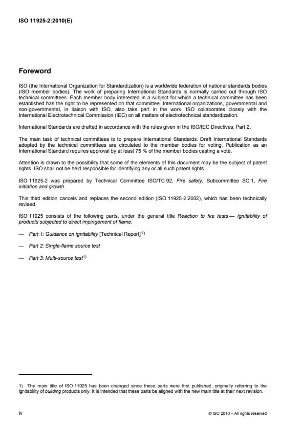 ISO 11925-2:2010 is a standard published by the International Organization for Standardization (ISO). Its full title is "Reaction to fire tests — Ignitability of products subjected to direct impingement of flame — Part 2: Single-flame source test". This standard covers: ISO 11925-2:2010 specifies a method of test for determining the ignitability of products by direct small flame impingement under zero impressed irradiance using vertically oriented test specimens.