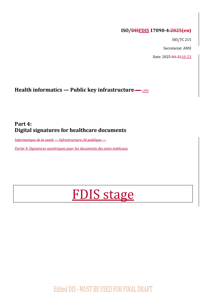 REDLINE ISO/FDIS 17090-4 - Health informatics — Public key infrastructure — Part 4: Digital signatures for healthcare documents Released:23. 10. 2025