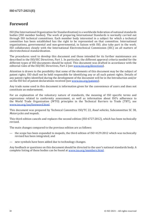 Keywords: ISO 6727:2021, motorcycle symbols, moped controls, tell‑tales, instrument panel symbols, symbol colours, motorcycle UI, vehicle standard.