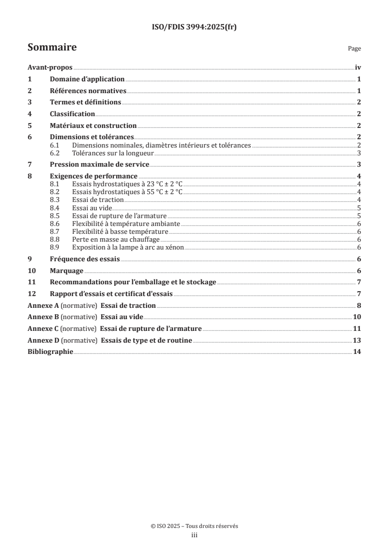 ISO 3994 - Tuyaux en plastiques — Tuyaux thermoplastiques à renforcement thermoplastique en spirale pour aspiration et refoulement de matières aqueuses — Spécifications/8/2025