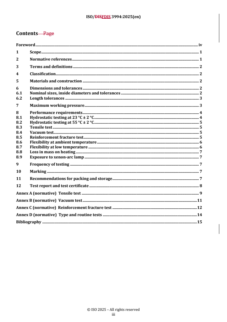 REDLINE ISO/FDIS 3994 - Plastics hoses — Helical-thermoplastic-reinforced thermoplastics hoses for suction and discharge of aqueous materials — Specification Released:11/24/2025