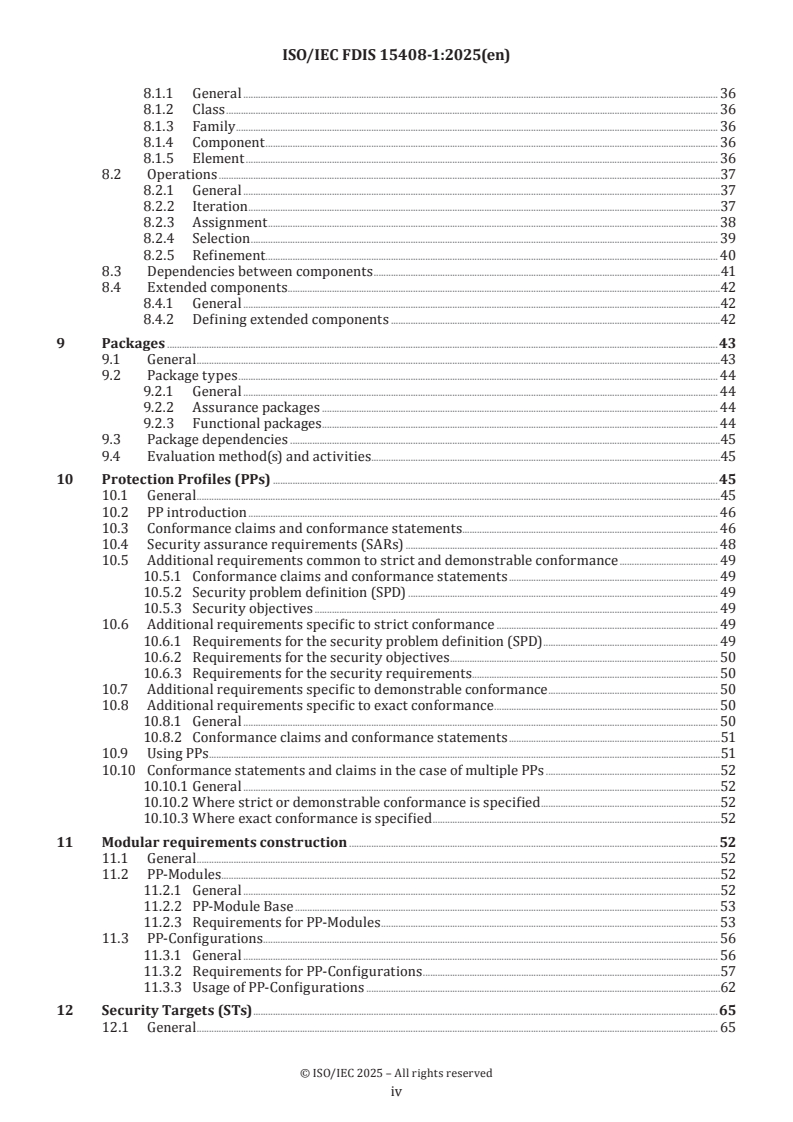 - Security components and tailoring operations: organization of functional and assurance components and permitted operations for tailoring components from ISO/IEC 15408‑2 and ISO/IEC 15408‑3.