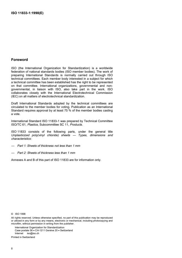 ISO 11833-1:1998 - Plastics -- Unplasticized poly(vinyl chloride) sheets -- Types, dimensions and characteristics
