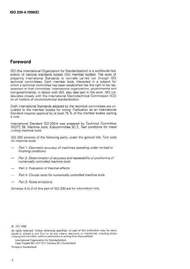 ISO 230-4:1996 has the following relationships with other standards: It is inter standard links to ISO 230-4:2005. Understanding these relationships helps ensure you are using the most current and applicable version of the standard.