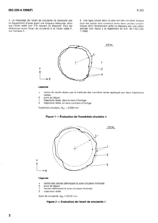 La présente partie de l'ISO 230 prescrit les méthodes d'essai et d'évaluation de l'hystérésis circulaire et de l'écart de circularité et de l'écart radial des trajectoires circulaires effectuées grâce aux mouvements simultanés de deux axes linéaires. Les instruments de mesure susceptibles d'être utilisés sont décrits en 6.63 de l'ISO 230-1:1996. La présente partie de l'ISO 230 a pour objectif de fournir une méthode de mesure des performances en contournage d'une machine-outil à commande numérique.
