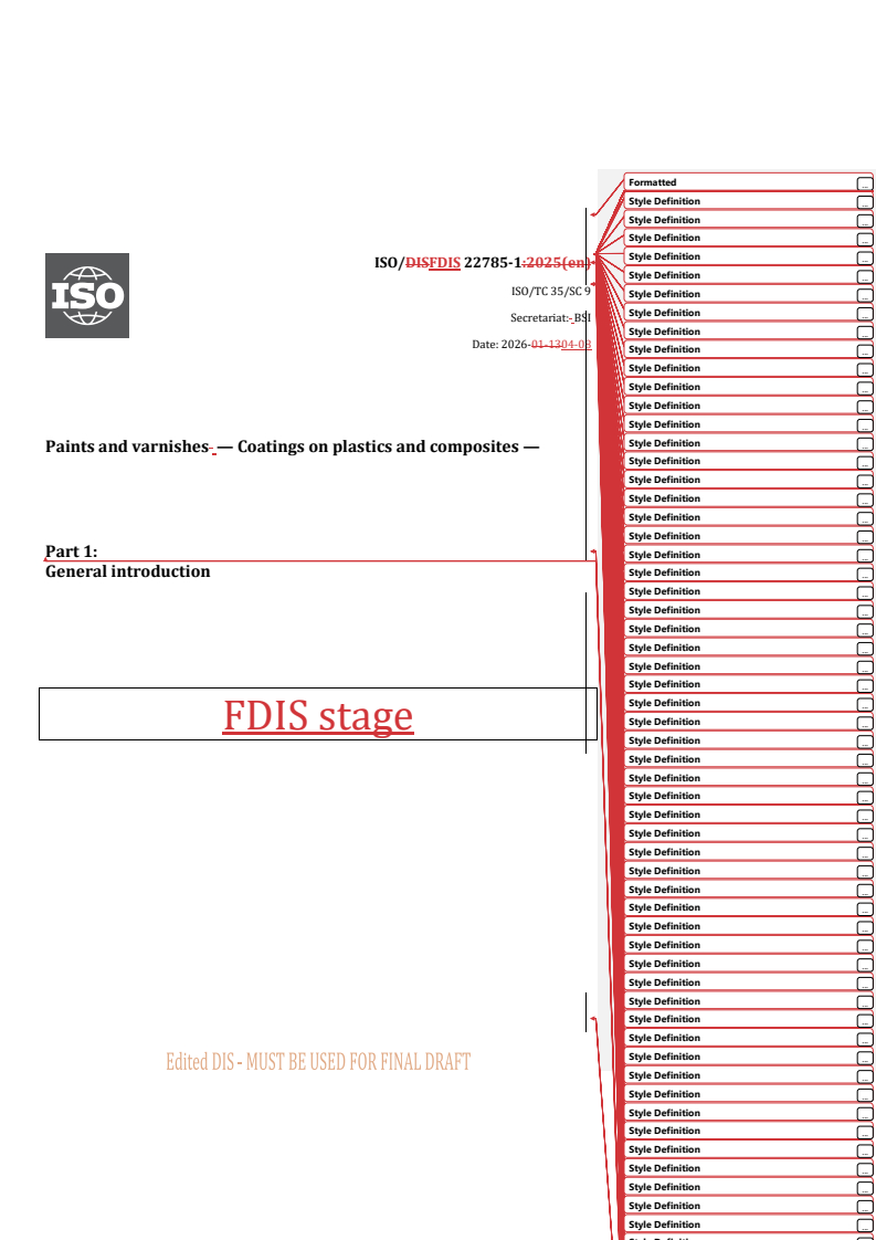 REDLINE ISO/FDIS 22785-1 - Paints and varnishes — Coatings on plastics and composites — Part 1: General introduction