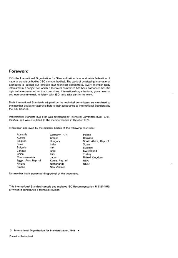 International Standard IS0 1184 was developed by Technical Committee ISO/TC 61,