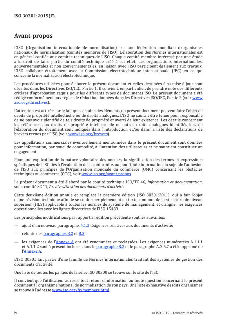 ISO 30301:2019 - Information et documentation -- Systemes de gestion des documents d'activité -- Exigences