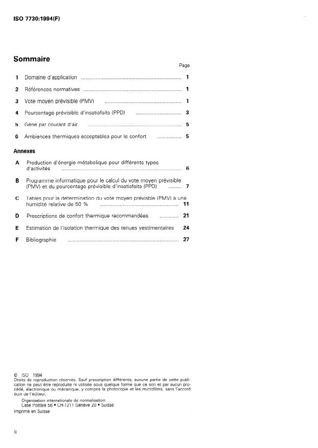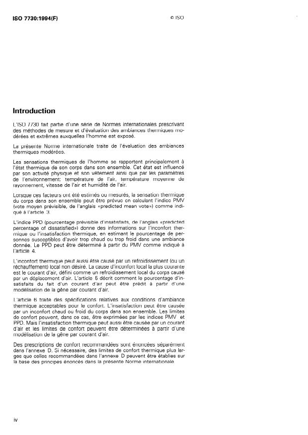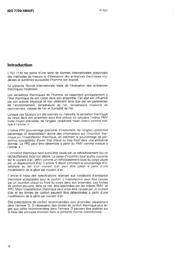 ISO 7730:1994 - Ambiances thermiques modérées -- Détermination des indices PMV et PPD et spécifications des conditions de confort thermique