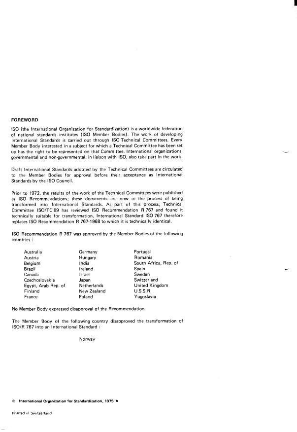 Committee ISO/TC 89 has reviewed IS0 Recommendation R 767 and found it