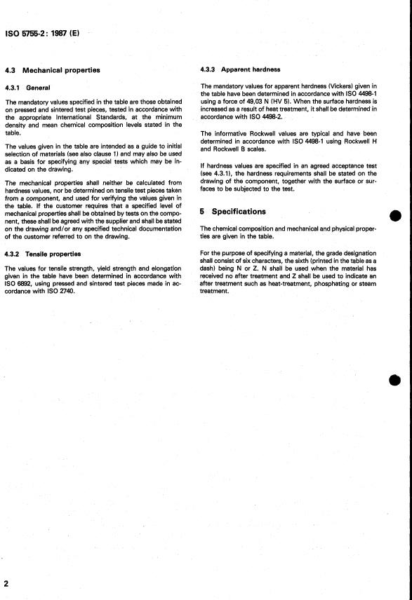 ISO 5755-2:1987 - Sintered metal materials -- Specifications